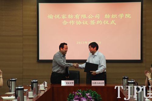 2013年9月27日,我校党委书记张宏伟在行政中心第五会议室会见到访的滨州市高新区党委副书记李茂生和愉悦家纺有限公司董事长刘曰兴等率领的11人考察团,双方就开展合作进行了洽谈,并签署3项合作协议。学校办公室主任徐先林、科技处副处长寇士军,以及纺织学院、复合材料研究所、艺术学院、环化学院、机械学院、材料学院、电气学院等7个院所的负责人出席本次洽谈会。洽谈会由科技处副处长李娜娜(挂职)主持。