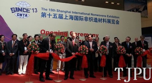 第十五届上海国际非织造材料展(SINCE2013)1023-25日在上海成功举办,我校纺织学院副院长钱晓明教授应邀出席了开幕典礼。鉴于我校纺织学院非织造材料与工程专业多年来对行业人才的培养以及行业发展的技术贡献,展会主办方再次免费为我校提供了展位。