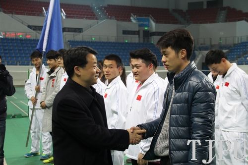 2014年2月21日下午,共青团中央书记处书记傅振邦一行莅临我校, 对“走下网络、走出宿舍、走向操场”主题群众性课外体育锻炼活动等共青团工作进行调研指导。共青团天津市委书记刘志强、副书记刘亚男、学校部部长时胜强陪同调研。我校党委书记张宏伟、校党委副书记杨吉棣会见了傅振邦一行,并陪同前往我校大学生创业园、体育馆进行参观调研。