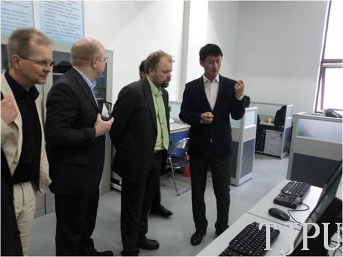 ANU HARKONEN一行首先参观了我校科研中心的科研成果展示,对我校的LED大功率半导体照明、污水处理技术等方面取得的成果表示出了浓厚的兴趣。接着,一行人来到国际教育学院会议室,双方介绍了各自学校概况、学院设置、专业特色等情况,增进了校际间的了解与友谊,并就下一步的模块化教学、双学位学生互换、双方专业教师互相参观学习等达成了初步合作意向。