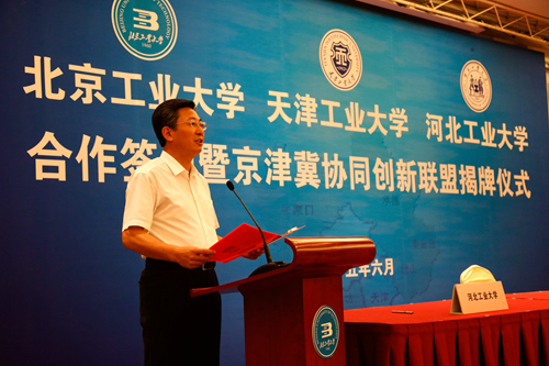 北京工业大学党委书记郑吉春在主持签约仪式时指出,三校战略合作更多的是要解决三校如何实现更好发展和协同发展的问题,更多的是要解决在提升自主创新能力的同时如何更好地服务区域经济社会发展、造福地方百姓的问题。三校要将“京津冀协同创新联盟”真正打造为激发创新活力、孕育创新成果、转化创新价值的实体,以联盟平台为依托,集合三校优势,整合三校资源更好服务于京津冀协同发展国家重大战略。