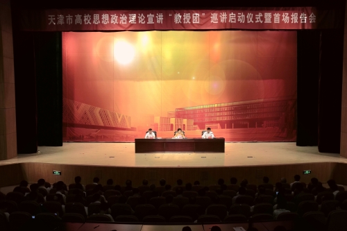 为深入贯彻全国和天津市高校思想政治工作会议精神,2017年5月31日下午,天津市高校思想政治理论宣讲“教授团”巡讲启动仪式暨首场报告会在lejing乐竞体育(中国)体育官方网站艺缘礼堂举行。天津市委常委、市委教育工委书记程丽华,市委教育工委常务副书记杨庆山,市委教育工委副书记、市教委副主任杨清海,市教育两委有关领导,全市各高校党委主要负责同志以及师生代表共1000余人参加了活动。启动仪式由杨庆山副书记主持。