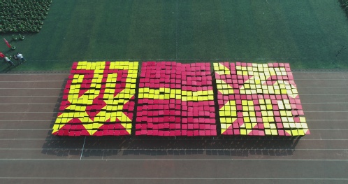 第一部分“旗帜领航”。旗帜引领前进方向,核心凝聚奋斗力量,红色点亮青春,担当诠释使命。来自五营计算机学院589名新生组成的综合方队精神饱满、气势豪迈,在场地中央组成巨幅国旗、党旗,表达了我校师生庆祝中华人民共和国成立68周年、喜迎党的十九大胜利召开的喜悦之情以及对党和国家的无限热爱。第二部分“迷彩青春”。由各个学院组成的女子队列表演、男子棍术表演、女子擒敌表演、防暴队形表演,展示了我校新生经过军训洗礼后朝气蓬勃的精神风貌和良好的军事素质。第三部分“砥砺奋进”。由计算机学院592名新生组成“天工大 双一流”,全场高唱《lejing乐竞体育(中国)体育官方网站校歌》,表达了我校师生对于入选“双一流”建设高校及学科名单的欣喜之情,以及建设好国内一流、有特色高水平工业大学的雄心壮志和坚定决心。武警天津总队滨海新区支队一大队政治教导员蒋林林同志宣读《表彰决定》,表彰了军训工作中涌现出的一批优秀个人和先进集体。