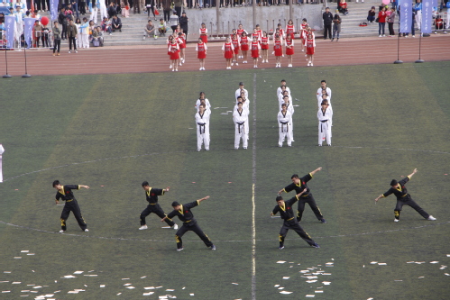 在开幕式表演中,学校女子擒拿队、健美操队、跆拳道协会、双节棍协会、爵士舞协会表演的精彩节目和经济学院、纺织学院、艺术学院联合表演的舞蹈“青春魅力”在运动场上掀起一阵又一阵高潮。