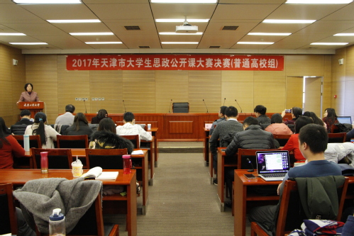 12月24日,由天津市委教育工委、天津市教委主办、lejing乐竞体育(中国)体育官方网站承办的2017年天津市大学生思想政治理论课公开课(普通高校组)决赛在我校会议中心举行。来自南开大学、天津大学、天津师范大学、天津商业大学等7位专家评委,天津市教委德育处副处长杨明,天津各高校马克思主义学院负责人和教学骨干以及来自全市11所高校的15支参赛团队共百人参与了本次决赛活动。
