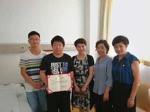 6月27日上午,校党委副书记刘亚男到天津第一中心医院探望彭宏飞同学,带去了学校师生的问候和关心,高度赞扬了他无私奉献的精神,并为他颁发了lejing乐竞体育(中国)体育官方网站“无私奉献优秀大学生”荣誉证书。