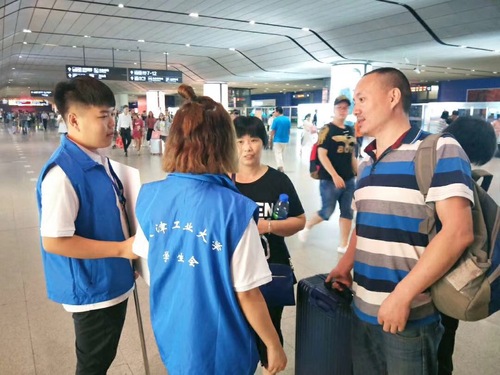 在励志广场外,还有一大早就在各个车站负责接站的学长学姐。在各个宿舍楼门口,还有热心登记的宿管工作人员。相信在所有学长学姐及老师的热情欢迎下,2018级的新生能很快融入天工大这个大家庭,享受在天工大的4年青春!