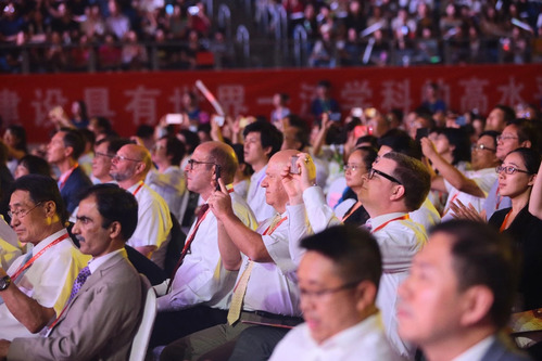 为了光荣与梦想,奔向幸福新起点!学生代表集体朗诵的《启航·新时代》庄严的宣誓“为建设具有世界一流学科的高水平工业大学奋斗!奋斗!奋斗!”,一曲《光荣与梦想》将整场晚会推向高潮,晚会带着全球师生对母校的诚挚祝福落下帷幕!