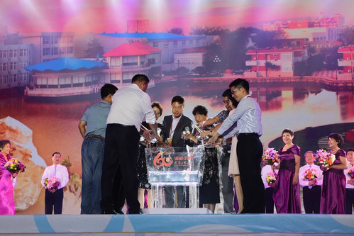 聚,甲子芳华。一声声“祝母校六十华诞生日快乐”的真挚祝福在场内回响。“祝你生日快乐”,手捧鲜花的教职工老师们用深情的歌声祝福学校生日快乐。当歌声渐弱,舞台中央出现一座透明的大鼎,鼎中是承载着天工人满满记忆的泮湖水,校友们把从全国各地带来的自己家乡的水汇入鼎中,天津海河水、武汉长江水、杭州西湖水……一缕缕清流汇入泮湖之水,也意味着一份份祝福被注入天工人心间。