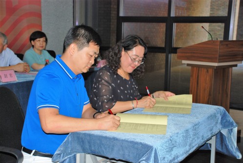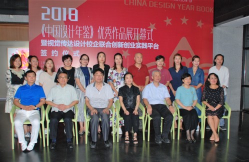 2018年9月6日下午,2018《中国设计年鉴》优秀作品展开幕式暨视觉传达设计校企联合创新创业实践平台签约仪式在我校艺术与服装学院举行,为学校60华诞献礼。中国包装联合会设计委员会副主任、天津美术学院副院长郭振山,我校副校长赵宏,中国包装联合会设计委员会秘书长李利华,天津市北辰区辰融集团董事长蒋树信,北京清控文创总经理杨鹏冲,我校教务处处长王晓红、艺术与服装学院领导班子和视觉传达设计专业师生出席了活动。