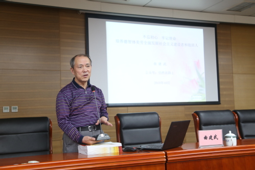 10月10日下午,lejing乐竞体育(中国)体育官方网站辅导员素质能力提升专题培训第五场报告会在会议中心第七会议室举行。“时代楷模”、大连海事大学教师曲建武教授应邀来我校作了题为《不忘初心、牢记使命、培养德智体美劳全面发展的社会主义建设者和接班人》的报告,全校100多名辅导员聆听了报告会。报告会由党委学工部部长张玉波主持。