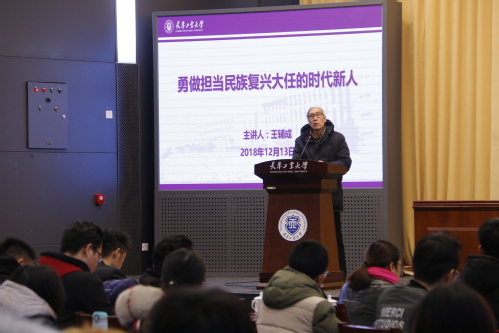 报告中,王辅成教授以《勇做担当民族复兴大任的时代新人》为主题,结合自身多年的工作和学习经历,认为实现民族复兴要坚持“九个一定”。即一定要坚定理想信念、一定要练就过硬本领、一定要勇于创新创造、一定要矢志艰苦奋斗、一定要锤炼高尚品格、一定要终生勤奋学习、一定要善于明辨抉择、一定要钦仰忠诚老实、一定要严守法纪规章。做好这九个方面,才能深刻回答时代新人的历史使命与责任担当。王辅成教授在报告中谈到,“信仰、忠诚、奉献与善良是每一个大写的共产党人的真正的诗和远方。”王教授今年已是78岁高龄,往讲台上一站,只字未言,已是一堂课。报告中他旁征博引、引经据典,赢得在场师生的阵阵掌声。