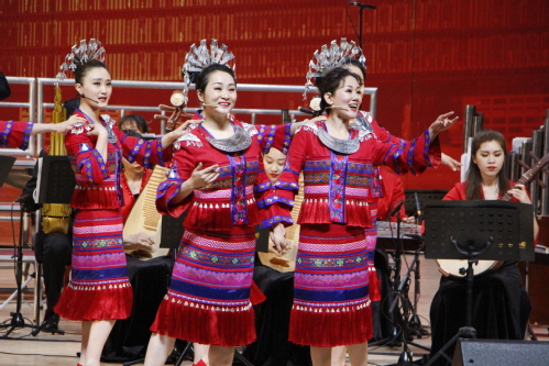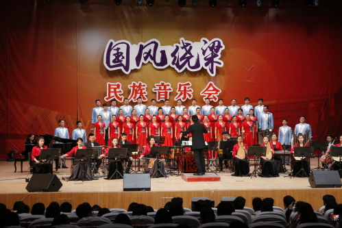这场“国风绕梁”音乐会以民歌为主线、民族乐器演奏为辅,展示了不同民族、不同地区的多元音乐特色。旧曲新编,运用不同的演奏形式,将传统乐曲与现代审美融为一体,展现独具特色的文化魅力。从大合唱的气壮山河到独唱小合唱的激情澎湃,乐团成员们用精湛的演奏将传统与现代融合,给这些经典曲目带来了新的生命与活力,给观众带来视听的享受。从悠扬而明亮的《郎在对门唱山歌》到欢腾而激昂的《赛马》,演出的氛围达到了一个高潮。在场的观众无不为演奏者高超的技巧与歌者伴着悠扬旋律的饱满演唱而惊叹折服。现场气氛热烈,全场观众都被这现场演出中传达的中华民族传统音乐的鲜活与力量深深震撼。演出在融汇不同地区方言与习俗而演奏的《天南地北茉莉花》中落下帷幕,深受感染的同学们纷纷上台与中央民族乐团的老师们合影留念。