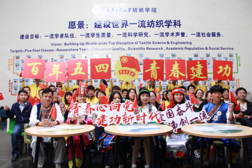 纺织科学与工程学院团委在学院共享空间举办观看纪念五四运动100周年大会暨特别主题团日活动。纺织1806团支部李佳成同学代表广大团员青年作了题为《百年五四 青春建功》的演讲,他表示作为当代青年大学生,应该谨记五四精神,努力学习,争做向上向善好青年。