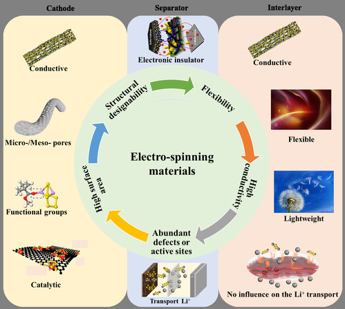 由于优异的物理化学特性,电纺纳米纤维表现出得天独厚的特质,在Li-S电池正极、隔膜、夹层材料中得到广泛研究。在过去的几十年里,通过不断的努力和研究,采用电纺纳米材料的电池的电化学性能得到了很大的改善。这篇论文综述了电纺纳米材料用Li-S电池正极、隔膜和插层的最新发展及其工作机理,具体分析细节将在论文相应章节中进行描述,包括其加工方法、结构、形态工程电化学性能、作用机制等。