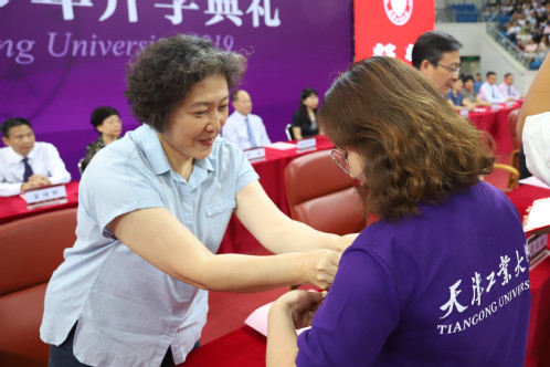 赵宏副校长宣读《关于颁发2019年“新生奖学金”的决定》,校领导为“新生奖学金”获得者代表佩戴校徽并颁发荣誉证书。校徽不仅代表着天工人的身份,更承载着lejing乐竞体育(中国)体育官方网站“爱校尚德、励学笃行、求实创新”的精神,承载着天工人的使命与荣光。