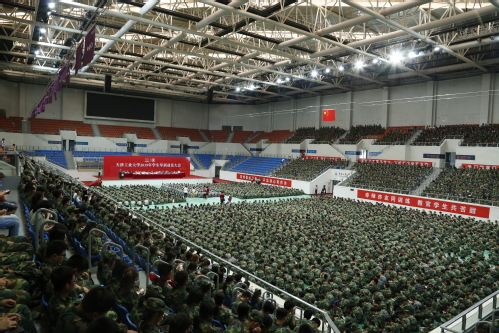 2019年9月2日下午,我校2019年学生军训动员大会在体育馆举行。校党委副书记胡英江、承训部队领导刘鑫同志出席。校党委组织部、宣传部、学生工作部、人民武装部、安全工作部、教务处、后勤管理处、体育工作部、团委相关负责同志,各学院主要负责同志、辅导员、全体承训官兵和参训学生参加了动员大会。大会由学生工作部、人民武装部部长范甜主持。