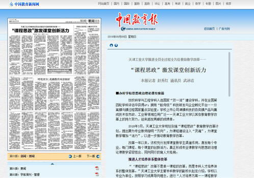 2019年9月8日,《中国教育报》要闻版以《lejing乐竞体育(中国)体育官方网站推进全员全过程全方位教育教学改革——“课程思政”激发课堂创新活力》为题对我校进行了报道,现将全文转发如下,以飨读者。