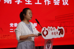 校党委副书记胡英江首先向2019年新聘用辅导员表示热烈的祝贺,肯定了2019年上半年学校学生工作取得的成绩,并就2019年下半年学生工作提出几点希望。希望广大学工战线的老师们进一步提高政治站位、牢记初心使命,努力担当作为、爱岗敬业奉献,守正创新、主动学习,真正做到贴近学生、关心学生、服务学生。