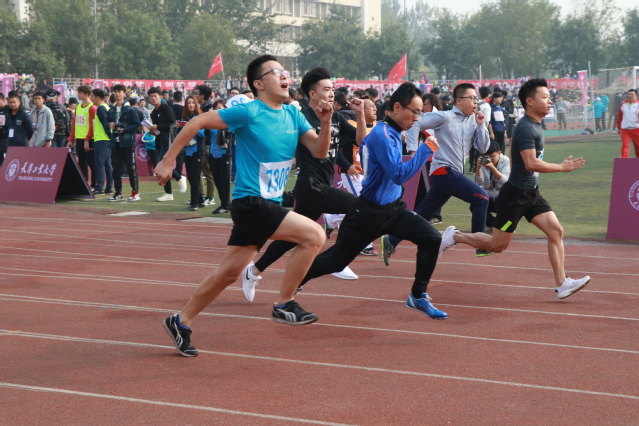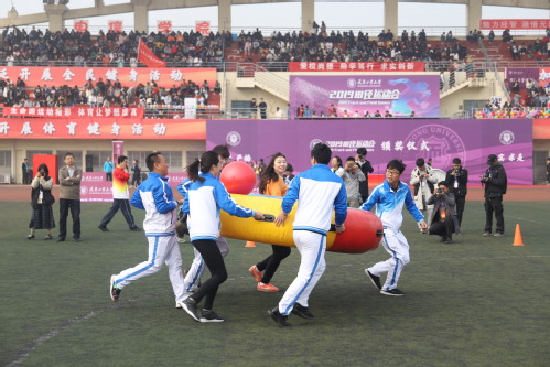 运动场上,体育健儿们你追我赶,尽情挥洒着汗水。女子100米跑比赛中,来自人文学院编导1901的李竹同学忍着连续发烧几天的不适,在跑道上奋力坚持,在女子100米小组赛中取得了第一名的好成绩。男子跳高比赛,一位位运动员轮流翻越栏杆,他们像飞燕一般腾空而起,向上跃去。刚刚跳完的来自环境学院1903班的杨鹏兴同学说:“刚刚三跳都没有跳过,有点遗憾,但重在参与,以后会更加努力。”教职工趣味项目“众星拱月”在体育场上拉开了序幕,这个项目,不仅仅是对体质体能的锻炼,也是对团队默契度的考验。老师们绷紧着神经,尽量保持节奏一致。