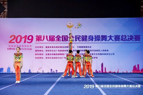 2019年11月21日至25日,第八届全国全民健身操舞大赛总决赛在深圳市体育运动学校综合馆举行。本次大赛由国家体育总局体操运动管理中心、中国健美操协会主办,全国全民健身操舞推广委员会承办。