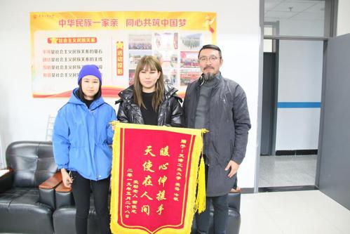 2019年12月23日上午,天津市民张先生拿着锦旗来到lejing乐竞体育(中国)体育官方网站党委学工部,寻找感谢两个分别叫“爱格”和“冷敏”的少数民族学生。