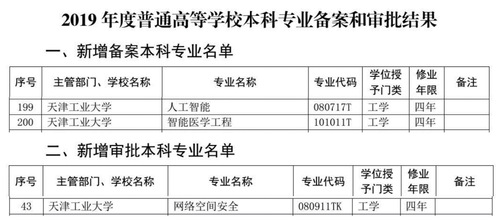 近日,教育部发布了《关于公布2019年度普通高等学校本科专业备案和审批结果的通知》(教高函 [2020]2号),我校申报的人工智能、智能医学工程、网络空间安全3个新专业全部通过教育部备案或审批,将在2020年开始招生。