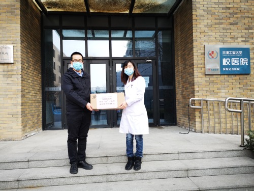 统战部张俊杰同志将马晓虹老师捐献口罩转交校医院工作人员