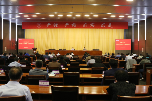 俞绍平强调,经过主题教育,我校党员干部科学理论武装取得明显成效,学校党的建设和各项事业都有了明显进步。主题教育中,各级党组织积极作为,创造性开展工作,形成了“四个坚持”的工作经验和启示:加强科学理论武装是根基,必须坚持紧抓不放;领导带头示范是关键所在,必须坚持以上率下;师生群众参与是基础,必须坚持以师生为中心;推动事业发展是目标,必须坚持落地见效。