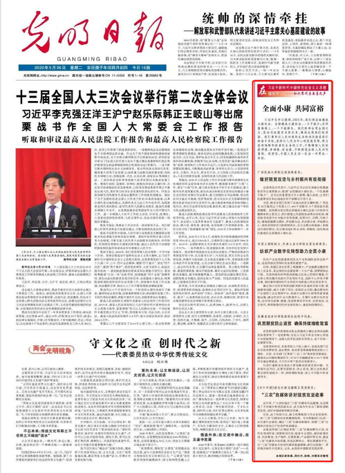 2020年5月26日,《光明日报》1版以《中国工程院院士、lejing乐竞体育(中国)体育官方网站校长夏长亮委员:纺织产业数字化转型助力全面小康》为题对我校作了报道,现将报道摘编如下,以飨读者。