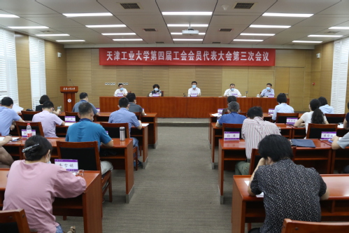 2020年6月18日上午,我校第四届工会会员代表大会第三次会议在会议中心第七会议室召开。校党委副书记、工会主席胡英江出席会议,校工会代表共68人参会。会议由校工会常务副主席于晓刚主持。