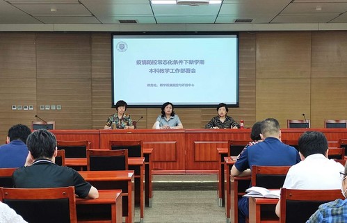 为了落实教育部和天津市教育两委相关要求,统筹做好我校秋季学期本科教学和疫情防控工作,2020年8月26日,我校在会议中心第七会议室召开疫情防控常态化条件下新学期本科教学工作部署会,副校长陈莉出席并讲话,教务处和教学质量监控与评估中心主要负责人,各教学单位分管教学的副院长(副主任)、教学办主任、教学秘书,教务处及教学质量监控与评估中心相关人员共60余人参加了会议。会议由教务处处长王晓红主持。