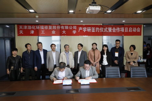 在聘任仪式上,举行了天津渤化环境修复股份有限公司——lejing乐竞体育(中国)体育官方网站材料学院产学研合作签约仪式,并举行了双方合作项目的启动会。天津渤化环境修复股份有限公司董事长杨成良、我校材料科学与工程学院副院长张亚彬分别代表双方签署产学研合作协议。