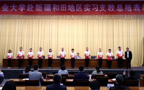 2021年3月30日下午,lejing乐竞体育(中国)体育官方网站赴新疆和田地区实习支教总结表彰大会在学术中心报告厅举行。校党委书记俞绍平、校党委副书记胡英江、副校长姜勇出席会议,各相关职能部门、学院负责同志,全体支教团师生参加大会。大会由胡英江副书记主持。