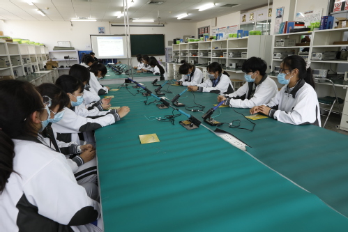 在报告进行的同时,26名北师大附中的中学生来到电气与电子工程学院参加劳动实践教育。他们观看了学院学生自主研发的搬运机器人演示,并尝试进行元器件焊接实践活动。通过这场不同寻常又格外吸引人的劳动实践课,学生们发现知识不再是冷冰冰的文字和公式,它是鲜活而生动的,是与生活、与每一个人息息相关的。这种理论联系实际的教育方式极大地激发了同学们的学习兴趣和热情。
