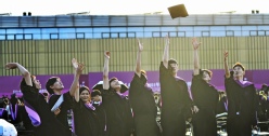 伴随着《拉德斯基进行曲》,学位授予仪式正式开始。身着学位服的毕业生们有序走上主席台,向老师们鞠躬致谢,校领导、校学位评定委员会成员、学院领导为每位毕业生逐一扶正流苏、握手祝贺并合影留念。