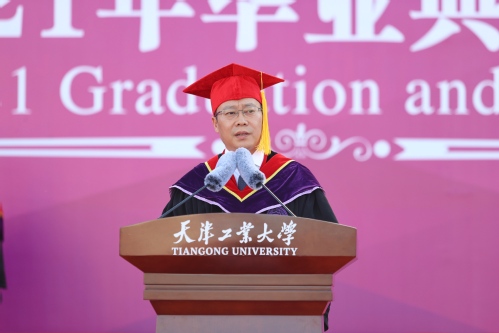 “要勇担时代重任,助力实现强国梦。”他强调,站在“两个一百年”奋斗目标历史交汇点,全面建设社会主义现代化国家新征程即将开启。身处新时代的大学毕业生,是现代化国家建设的生力军,是承载历史使命的青年才俊。他希望毕业生们勇敢接过时代的接力棒,奋力拼搏三十年,助力实现富国梦、强国梦!