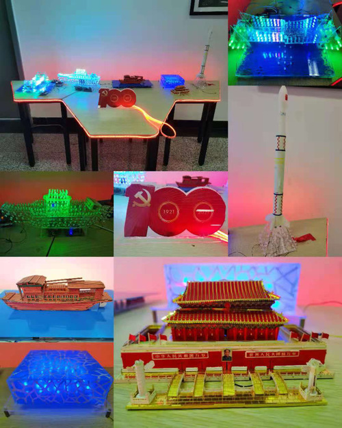物理科学与技术学院党委组织物理创新实验中心教师和学院“天工开物”学生专业社团的同学,围绕中国共产党的百年光辉历程,选取建党百年中的重大事件和辉煌时刻为设计元素,经过认真组织策划和三个月的精心设计制作,完成了彰显物理学科专业特色、发挥师生特长的红色光电作品展。展示作品主要涉及3D打印,激光雕刻,光电立体显示等,将学院加强学生动手实践能力、创新能力和团队精神的人才培养理念、学生实践创新能力培养的成果与建党百年主题相融合,展现了学院师生的赤诚之心、报国之志。