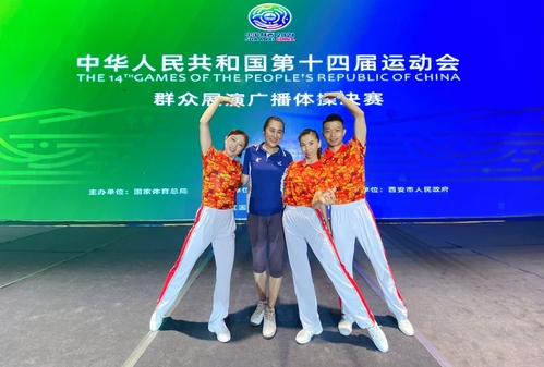 2021年8月22至26日,第十四届全运会群众赛事活动展演项目在西安曲江国际会议中心正式启动。本次比赛采取上传视频线上参赛,通过决赛进行线下评审最终选出各类奖项。我校教师王丽娜、李丹丹、程俊刚代表天津市参加广播体操企事业单位组三人赛的角逐,为天津代表团勇夺首金!