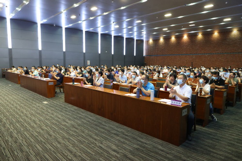 为深入学习贯彻习近平总书记“七一”重要讲话精神,凝聚干事创业的奋进力量,不断推进学校事业发展,2021年9月7日下午,我校举办学习贯彻习近平总书记“七一”重要讲话精神专题宣讲报告会。市委党史学习教育宣讲团成员、天津大学马克思主义学院院长颜晓峰教授应邀作了题为《深刻领悟伟大建党精神 开创民族复兴新的伟业》的专题宣讲报告。校领导、全体中层干部,2021年青年干部及骨干教师培训班、“红船精神传承班”、“青马工程”第四期培训班学员代表参加。报告会由学校党史学习教育领导小组组长、校党委书记俞绍平主持。