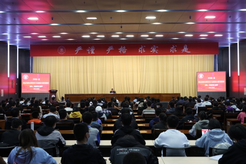2021年10月14日下午,校党委书记俞绍平以《铭记党的光辉历史 弘扬伟大建党精神》为题,在学术中心为学生讲授“开学第一课”。校党委宣传部、党委学工部、马克思主义学院主要负责同志以及来自全校各学院的260余名学生代表参加。“开学第一课”由党委宣传部部长何虹主持。