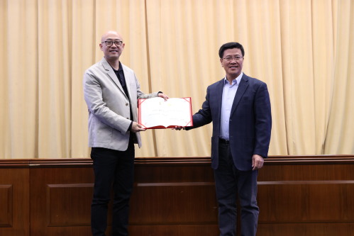 报告会前,胡英江副书记为潘异先生颁发校外就业导师聘书。潘异先生于2003年联合创立汇川技术股份有限公司,现任深圳市汇川技术股份有限公司、苏州汇川技术有限公司董事,哇牛资本董事、总裁,南京心汇心公益基金理事。一直以来,潘异先生热爱母校、关心母校,以各种形式回馈母校,曾捐赠300万元支持学校事业发展,现任我校顾问教授、校教育发展基金会理事。