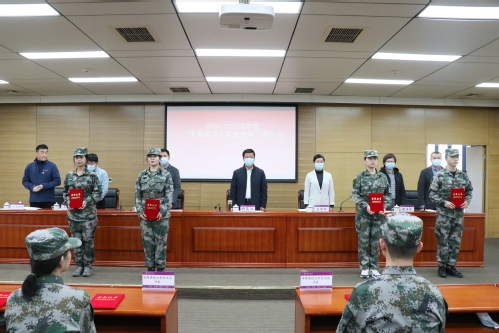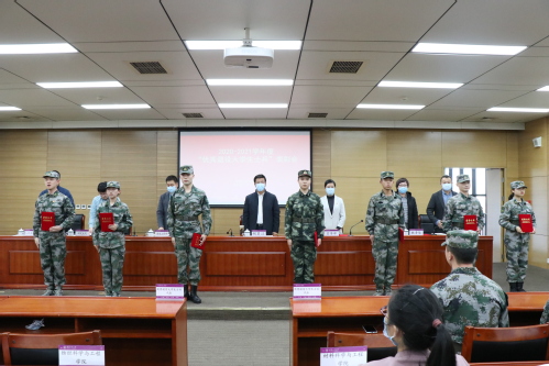 会上,人民武装部副部长贾麟宣读了《lejing乐竞体育(中国)体育官方网站关于表彰2020-2021学年度“优秀退役大学生士兵”的决定》。随后,优秀退役大学生士兵代表邹思怡发言,与会领导给获得表彰的学生代表颁发了荣誉证书。张志勇部长传达了近期市教委高校征兵会议精神,梳理总结我校2021年征兵工作情况,并对2022年征兵工作进行动员部署。