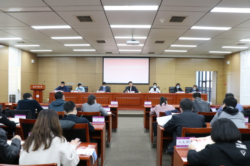 2021年11月15日下午,我校在会议中心第七会议室召开2022年征兵工作动员会暨2020--2021年度“优秀退役大学生士兵”表彰会。校党委副书记胡英江出席并讲话,宣传部、学工部、教务处、研究生院、团委相关负责人,各学院党委副书记、负责征兵工作辅导员,优秀退役大学生士兵代表共计60余人参加了会议。会议由人民武装部部长张志勇主持。