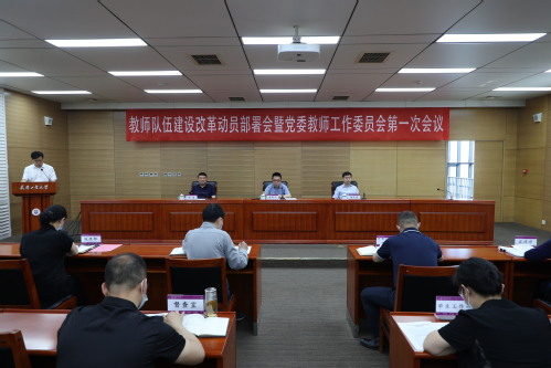 为深入贯彻落实习近平总书记在中国人民大学考察时的重要讲话精神,进一步加强学校新时代教师队伍建设,2022年5月20日上午,我校在会议中心第七会议室召开教师队伍建设改革动员部署会暨党委教师工作委员会第一次会议。校党委书记俞绍平、党委副书记陈泮成、驻校纪检监察组组长赵强出席。党委教师工作委员会成员单位主要负责同志,各基层党委、党总支、直属党支部书记参加会议。会议由俞绍平书记主持。