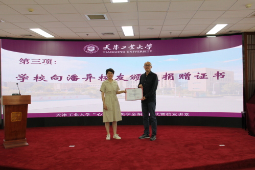 潘异校友表达了对母校培育的感恩之情,表示很高兴能够为母校的发展贡献微薄之力,希望自己能为学弟学妹树立回馈母校、支持学校发展的榜样,从善事做起,实现个人价值。