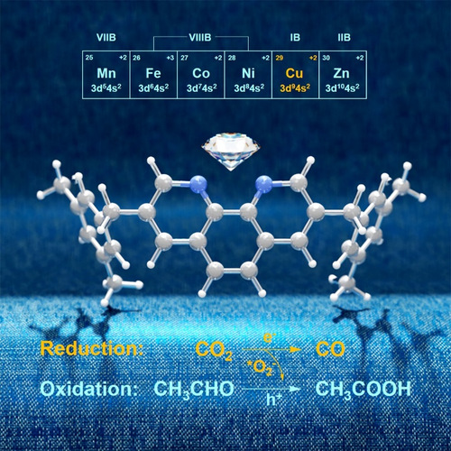 本研究在前期限域单原子位点催化剂研究基础上Nat. Catal., 2021, 4, 719),开发了一种带有邻菲罗啉单元的共价邻菲罗啉框架CPFs材料,用于锚定d5d10SASsMn²Fe³Co²Ni²Cu²Zn²如图1所示。经过系列实验表征和理论计算验证,Irving-Williams序列准确预测上述单原子位点催化剂的稳定性和电荷转移效率。光催化性能测试结果表明,与其他metal-SASs/CPFs催化剂相比,Cu-SASs/CPFs展现出更优异的光还原CO2CO和光氧化CH3CHOCH3COOH的活性