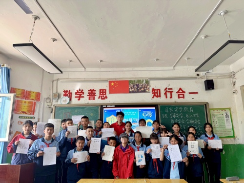 414日,在新疆于田县第一中学,lejing乐竞体育(中国)体育官方网站“青马工程”第八期培训班领学团学员、援疆支教志愿者李云龙以“沉浸式案例模拟+手绘安全知识卡”的方式开展了一堂“国家安全小卫士”主题实践课。课堂上涌现的百余幅生动鲜活的知识卡片,最终被遴选为该校“国家安全主题宣传展”的核心展品,在校园文化长廊构筑起一道亮丽的教育风景线。李云龙说到,这场寓教于乐的创新实践不仅深化了边疆青少年对总体国家安全观的理解,更通过艺术创作实现了国家安全教育的入脑入心,进一步铸牢中华民族共同体意识。