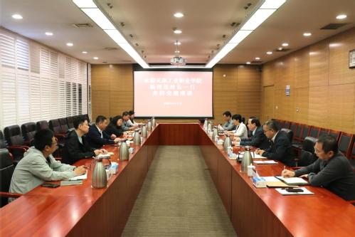 2025年4月17日上午,天津工业职业学院党委副书记、校长杨理连,副校长张秀芳一行6人来我校交流座谈。校长姜勇、副校长林立刚出席座谈会,教务处、国际交流与合作处、机械工程学院相关负责同志参会。会议由林立刚主持。