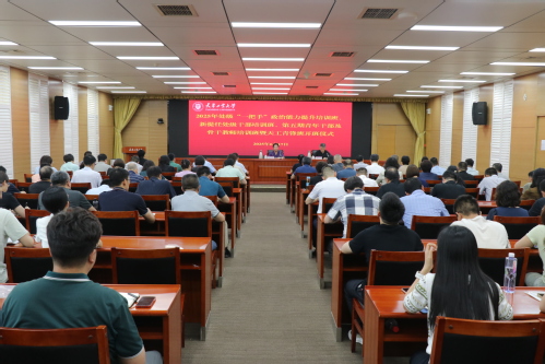 617日,我校举行2025年处级“一把手”政治能力提升培训班、新提任处级干部培训班、第五期青年干部及骨干教师培训班暨天工青锋班开班仪式。校党委书记沈江作开班动员讲话,培训班全体学员共计120余人参加。会议由校党委副书记张玉波主持。